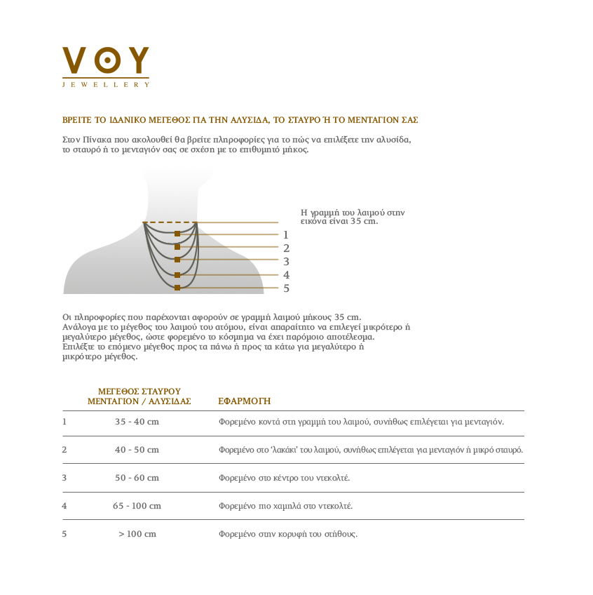 • Εάν έχετε ένα δαχτυλίδι που εφαρμόζει τέλεια στο δάχτυλο στο οποίο θέλετε να φορέσετε τη δημιουργία της VOY μπορείτε να το τοποθετήσετε στον πλησιέστερο «κύκλο» μεγέθους του Πίνακα Μεγεθών Δαχτυλιδιών της VOY. Κατεβάστε τον Πίνακα Μεγεθών Διαχτυλιδιών σε μορφή pdf εδώ