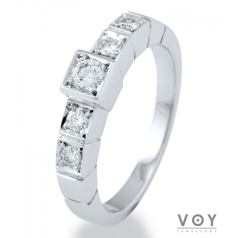 Ένα υπέροχο δαχτυλίδι από Χρυσό 18 Καρατίων με Διαμάντια. Ένα λαμπερό κόσμημα που μπορεί είτε να φορεθεί μόνο του είτε να συνοδεύσει το μονόπετρο ή τη βέρα σας.