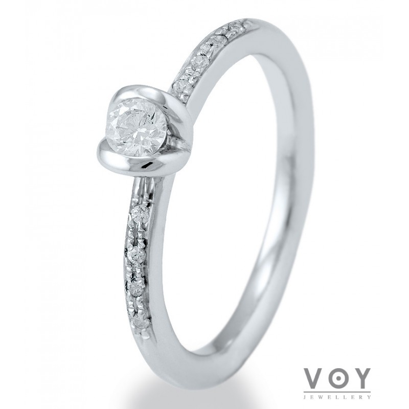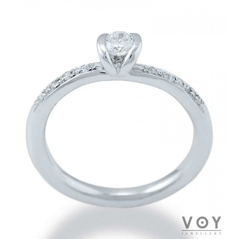 Δεξιοτεχνία, αρμονία και τελειότητα χαρακτηρίζει αυτό το μονόπετρο δαχτυλίδι από 18 καράτια Λευκόχρυσο με Διαμάντι.