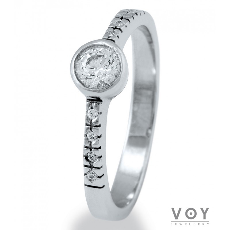 Δεξιοτεχνία, αρμονία και τελειότητα χαρακτηρίζει αυτό το μονόπετρο δαχτυλίδι από 18 καράτια Λευκόχρυσο με Διαμάντι.