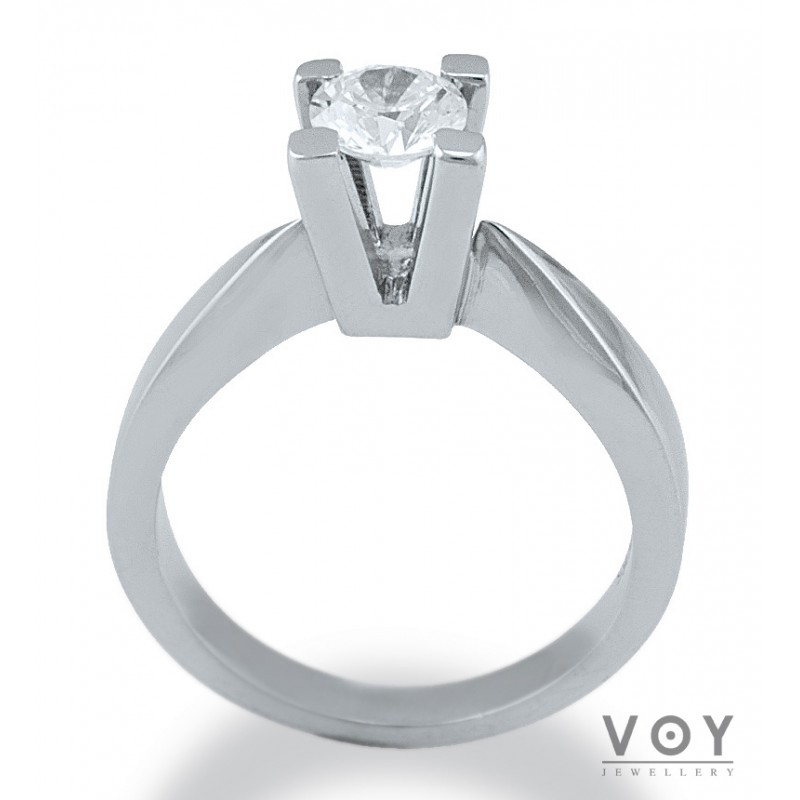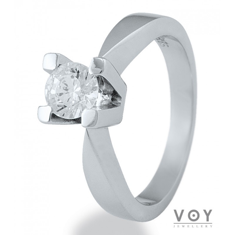 Δεξιοτεχνία, αρμονία και τελειότητα χαρακτηρίζει αυτό το μονόπετρο δαχτυλίδι από 18 καράτια Λευκόχρυσο με Διαμάντι.