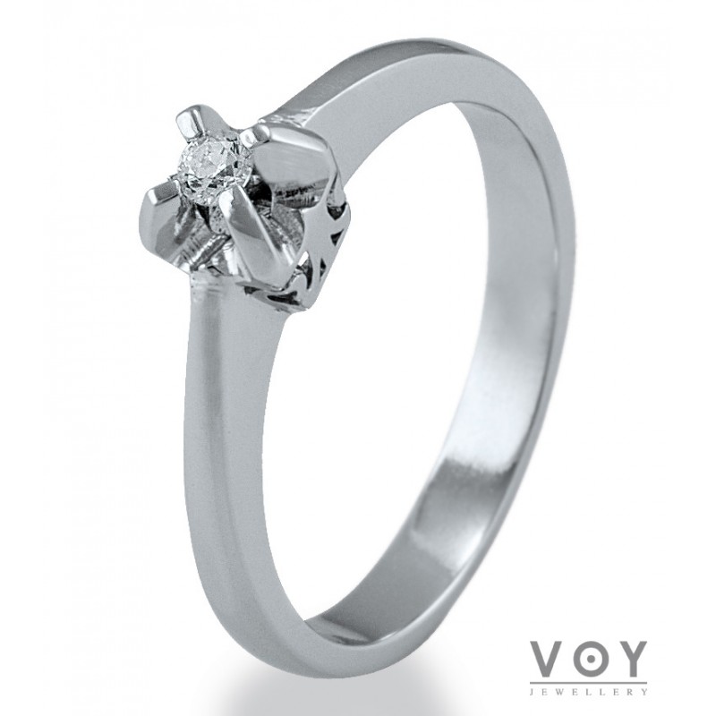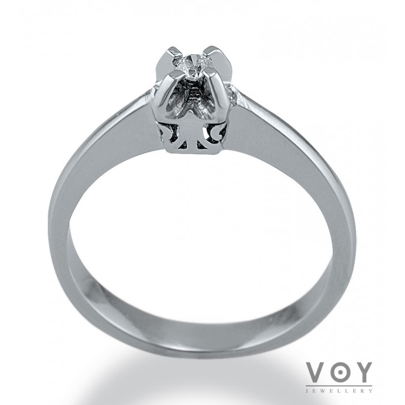 Δεξιοτεχνία, αρμονία και τελειότητα χαρακτηρίζει αυτό το μονόπετρο δαχτυλίδι από 18 καράτια Λευκόχρυσο με Διαμάντι.