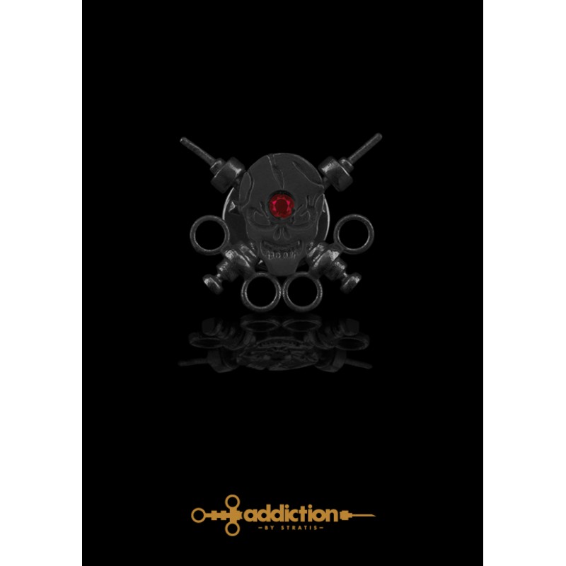 Καρφίτσα Skull, με καρφωμένες σύριγγες που απεικονίζουν το αποτέλεσμα της χρήσης ναρκωτικών