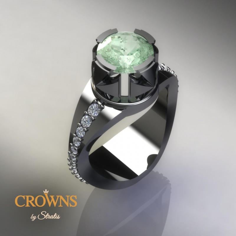 Πολύτιμος Λίθος | Πράσινος Αμέθυστος & Διαμάντια κοπής Μπριγιάν |