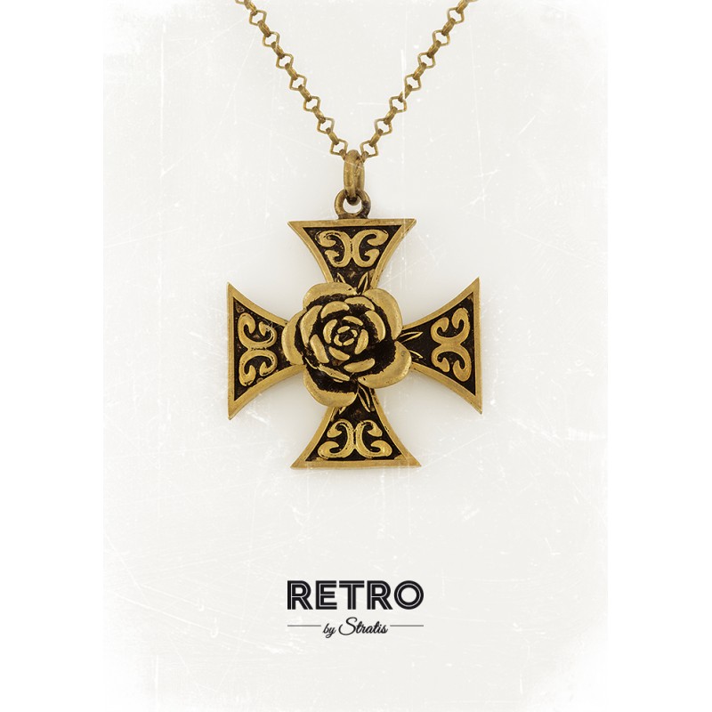 Μενταγιόν Rose Cross από Ορείχαλκο με Μάυρο Σμάλτο, ως παγκόσμιο σύμβολο του πάθους, της τελειότητας, της ζωής και του θανάτου