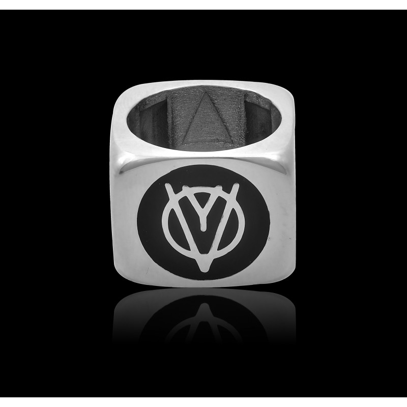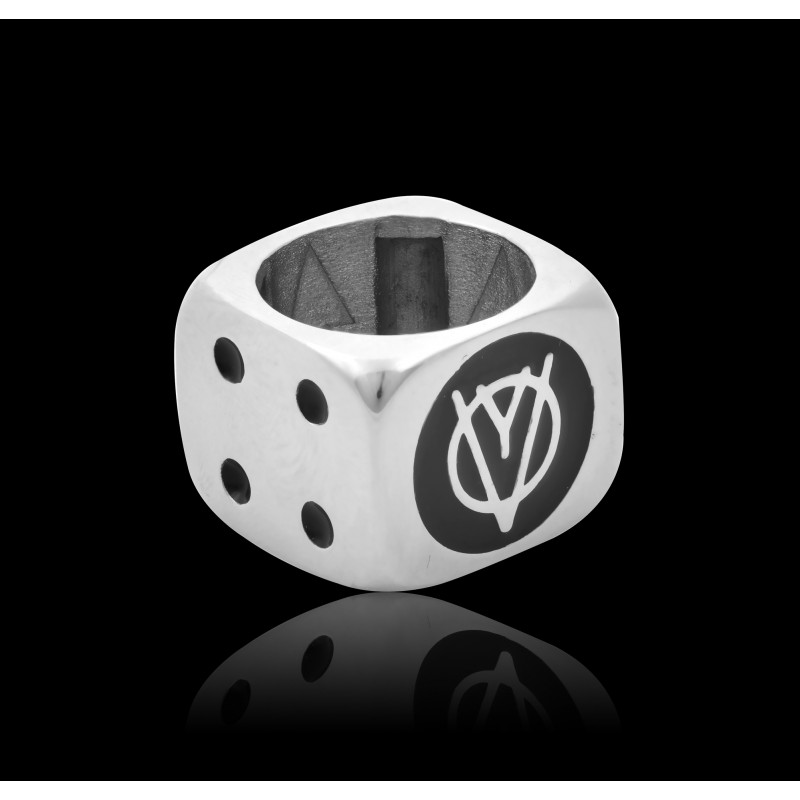 Το Δαχτυλίδι "Dice by Stratis" είναι από επιπλατινωμένο ορείχαλκο, με λεπτομέρειες μαύρου σμάλτου.