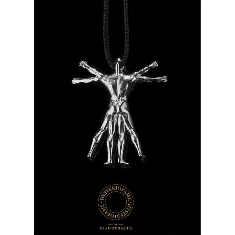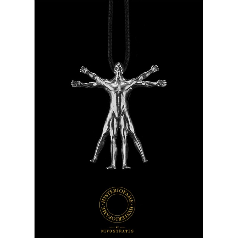 Μενταγιόν “Βιτρούβιος”. Απεικονίζει τη γνωστή αντρική φιγούρα, από το διάσημο σχέδιο του Λεονάρντο Ντα Βίντσι στη μετά θάνατο μορφή του