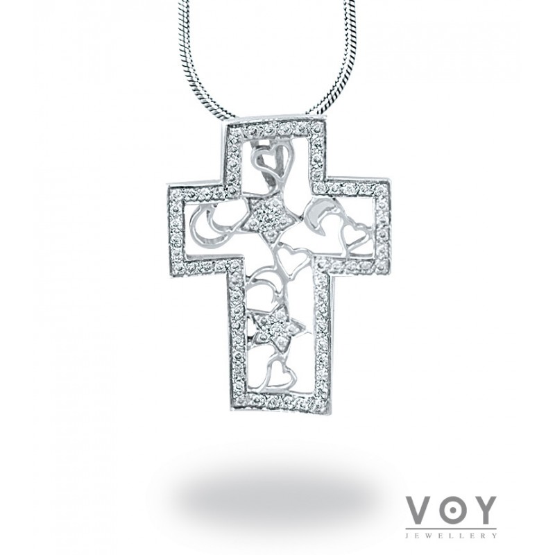 Σταυρός με Αλυσίδα σε Λευκό Χρυσό Κ18 (ST_064)