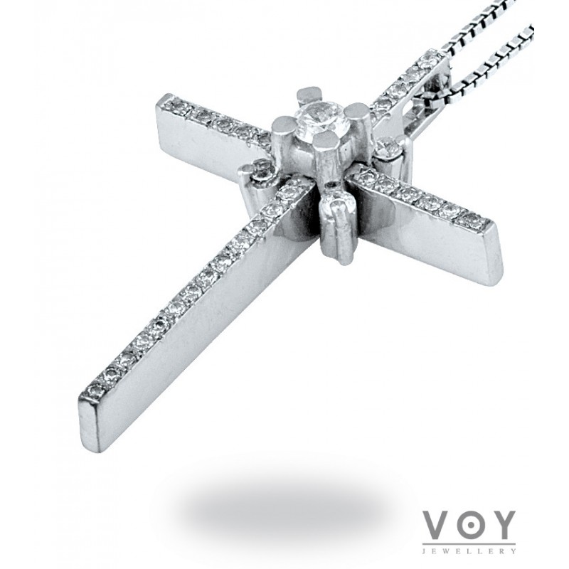Σταυρός με Αλυσίδα σε Λευκό Χρυσό Κ18 (ST_220)