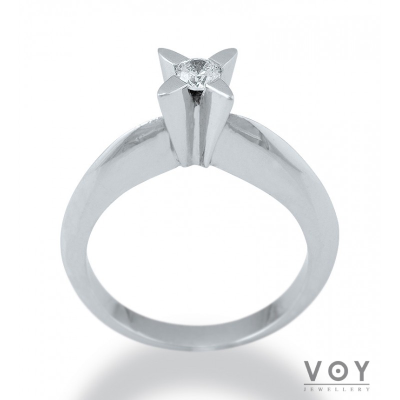 Δεξιοτεχνία, αρμονία και τελειότητα χαρακτηρίζει αυτό το μονόπετρο δαχτυλίδι από 18 καράτια Λευκόχρυσο με Διαμάντι.