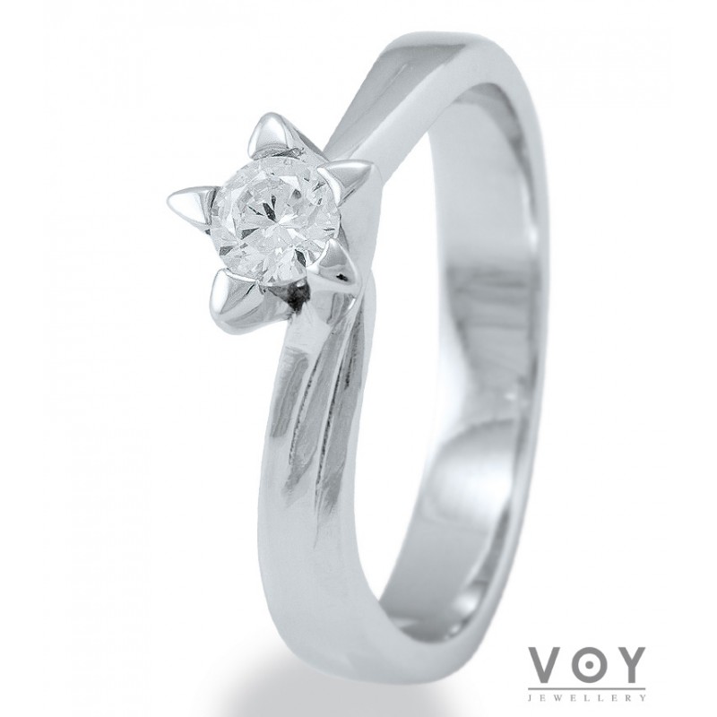 Δεξιοτεχνία, αρμονία και τελειότητα χαρακτηρίζει αυτό το μονόπετρο δαχτυλίδι από 18 καράτια Λευκόχρυσο με Διαμάντι.