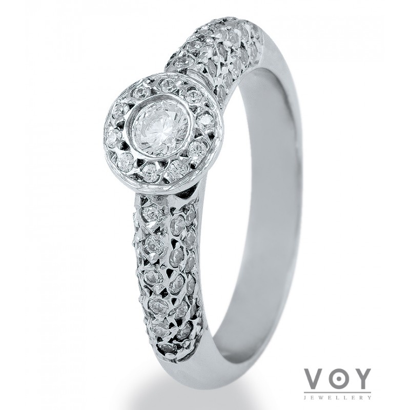 Δεξιοτεχνία, αρμονία και τελειότητα χαρακτηρίζει αυτό το μονόπετρο δαχτυλίδι από 18 καράτια Λευκόχρυσο με Διαμάντι.