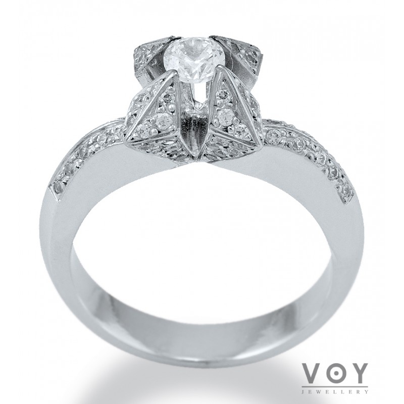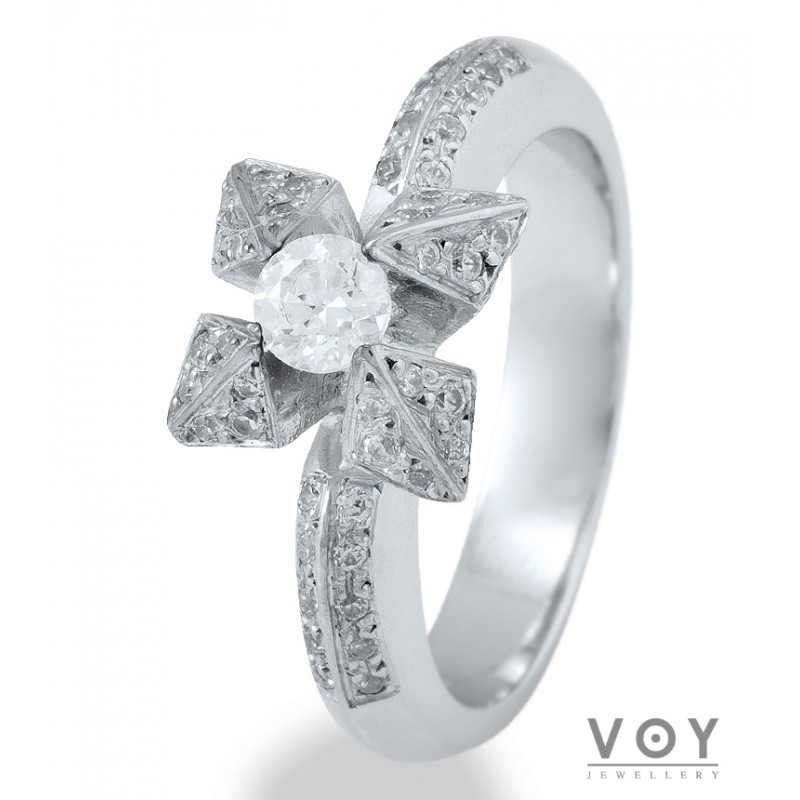 Δεξιοτεχνία, αρμονία και τελειότητα χαρακτηρίζει αυτό το μονόπετρο δαχτυλίδι από 18 καράτια Λευκόχρυσο με Διαμάντι.