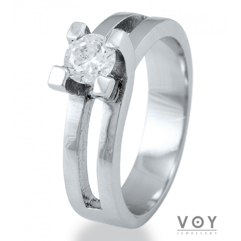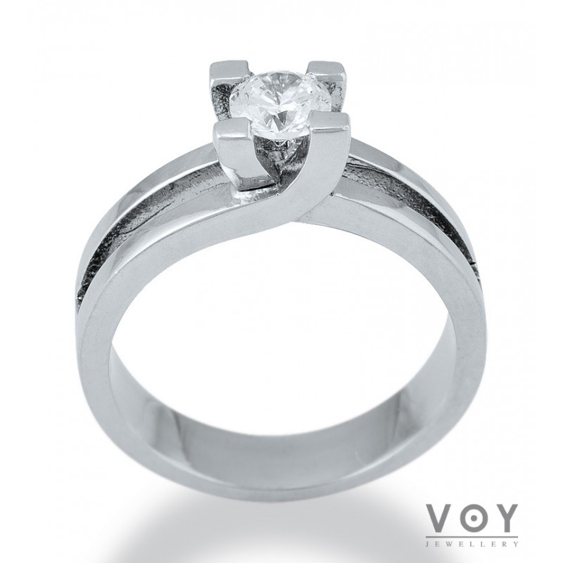 Δεξιοτεχνία, αρμονία και τελειότητα χαρακτηρίζει αυτό το μονόπετρο δαχτυλίδι από 18 καράτια Λευκόχρυσο με Διαμάντι.
