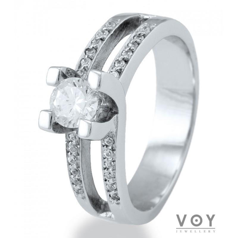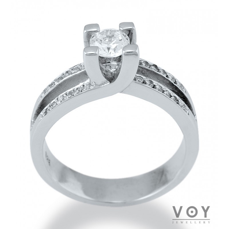 Δεξιοτεχνία, αρμονία και τελειότητα χαρακτηρίζει αυτό το μονόπετρο δαχτυλίδι από 18 καράτια Λευκόχρυσο με Διαμάντι.