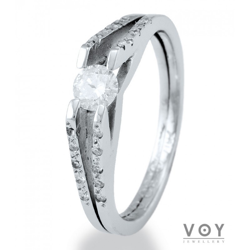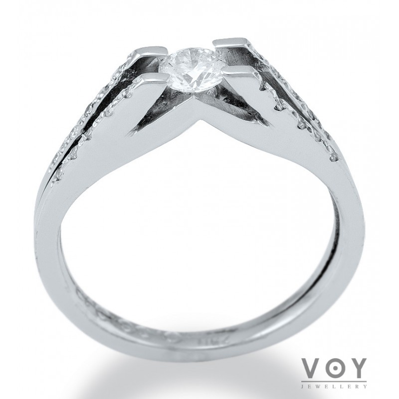 Δεξιοτεχνία, αρμονία και τελειότητα χαρακτηρίζει αυτό το μονόπετρο δαχτυλίδι από 18 καράτια Λευκόχρυσο με Διαμάντι.