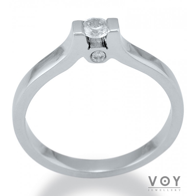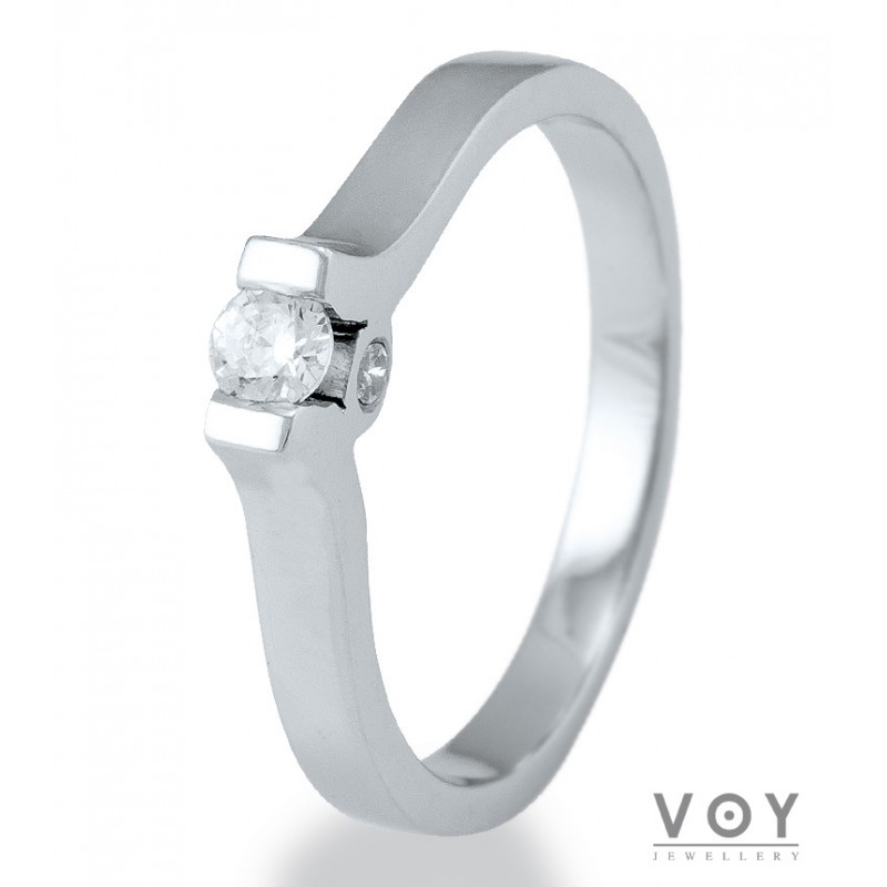 Δεξιοτεχνία, αρμονία και τελειότητα χαρακτηρίζει αυτό το μονόπετρο δαχτυλίδι από 18 καράτια Λευκόχρυσο με Διαμάντι.