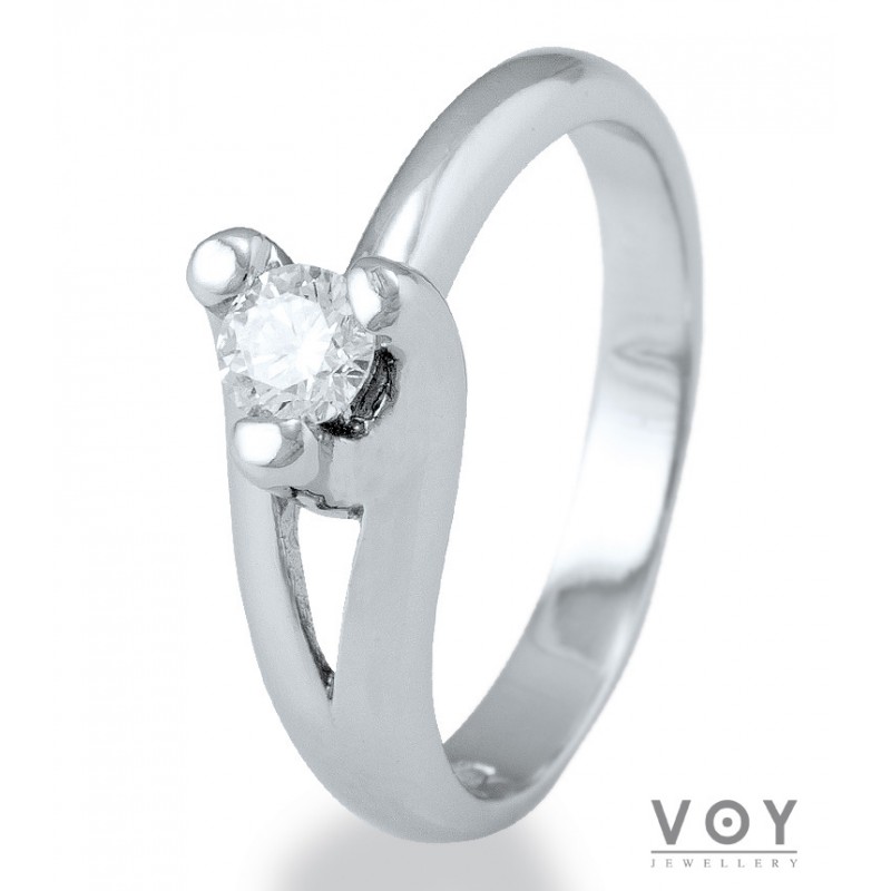 Δεξιοτεχνία, αρμονία και τελειότητα χαρακτηρίζει αυτό το μονόπετρο δαχτυλίδι από 18 καράτια Λευκόχρυσο με Διαμάντι.