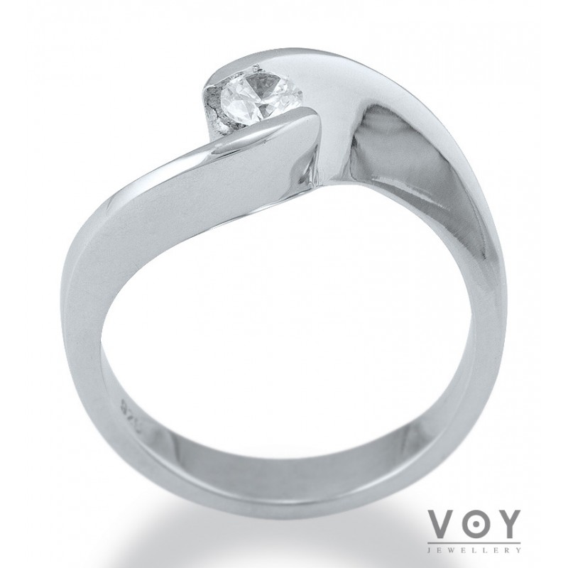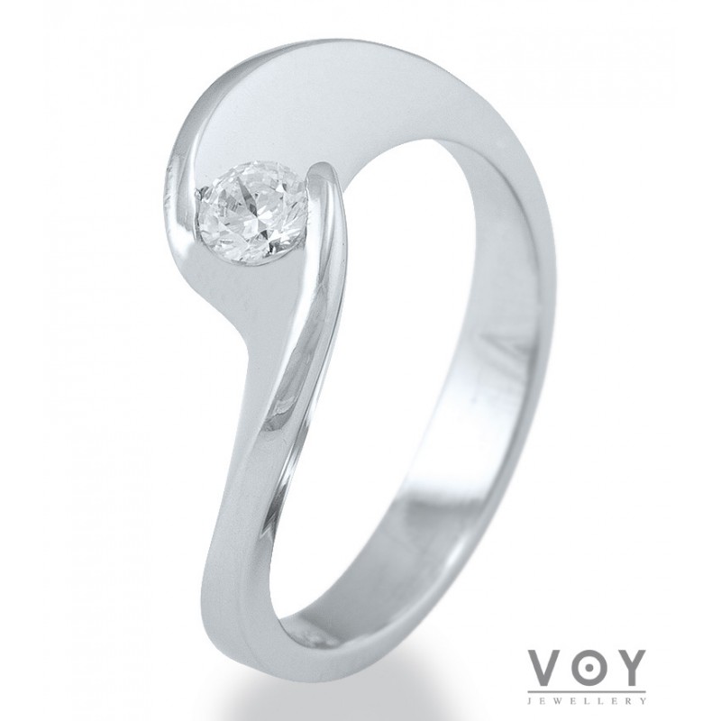 Δεξιοτεχνία, αρμονία και τελειότητα χαρακτηρίζει αυτό το μονόπετρο δαχτυλίδι από 18 καράτια Λευκόχρυσο με Διαμάντι.