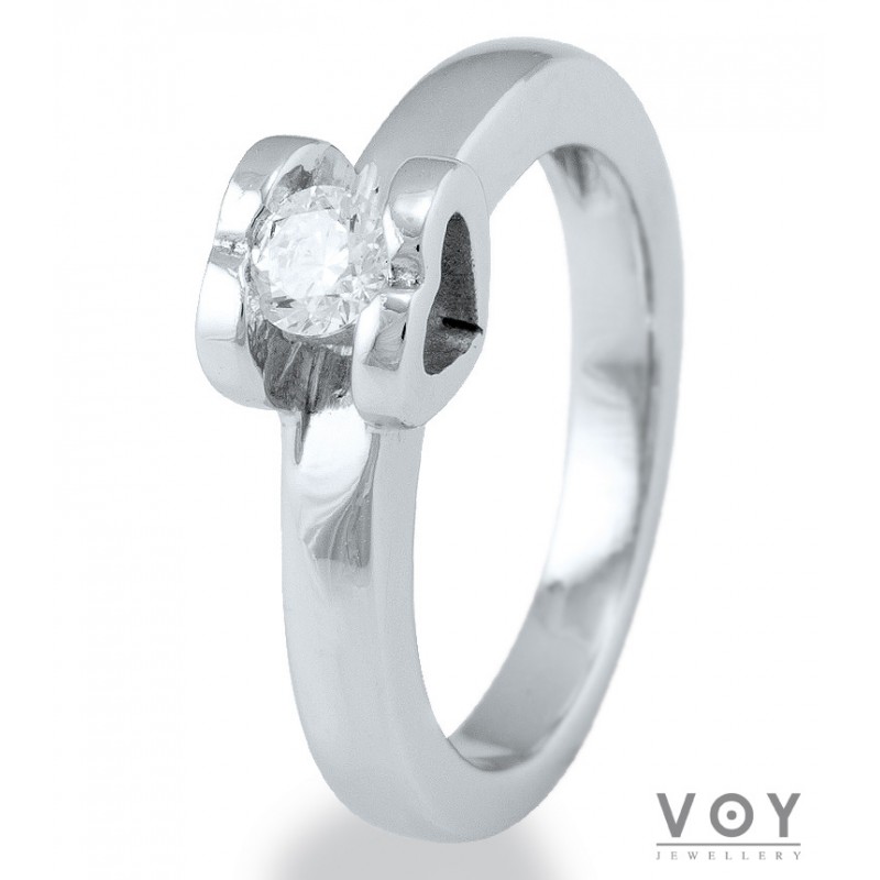 Δεξιοτεχνία, αρμονία και τελειότητα χαρακτηρίζει αυτό το μονόπετρο δαχτυλίδι από 18 καράτια Λευκόχρυσο με Διαμάντι.