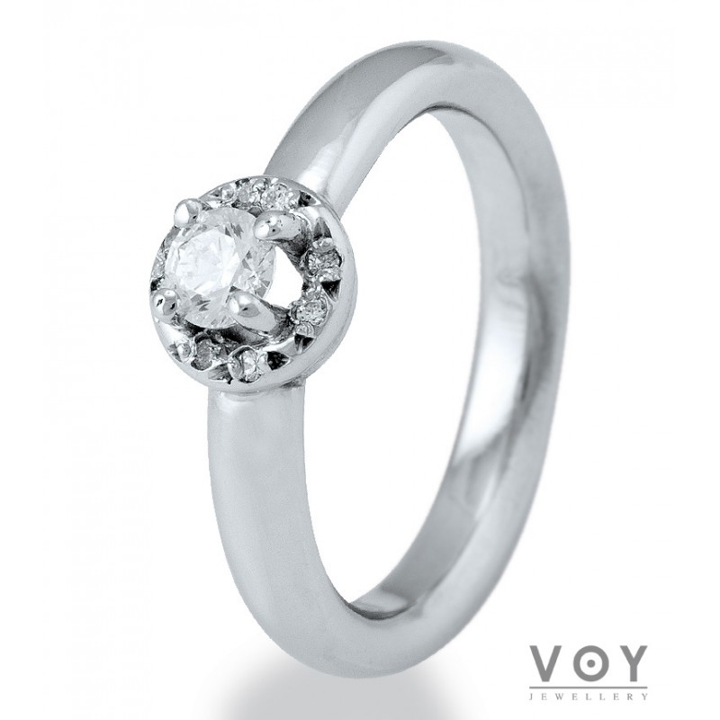 Δεξιοτεχνία, αρμονία και τελειότητα χαρακτηρίζει αυτό το μονόπετρο δαχτυλίδι από 18 καράτια Λευκόχρυσο με Διαμάντι.