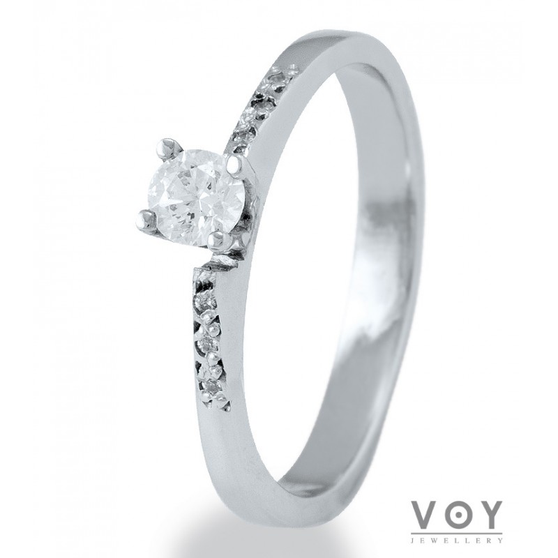Δεξιοτεχνία, αρμονία και τελειότητα χαρακτηρίζει αυτό το μονόπετρο δαχτυλίδι από 18 καράτια Λευκόχρυσο με Διαμάντι.