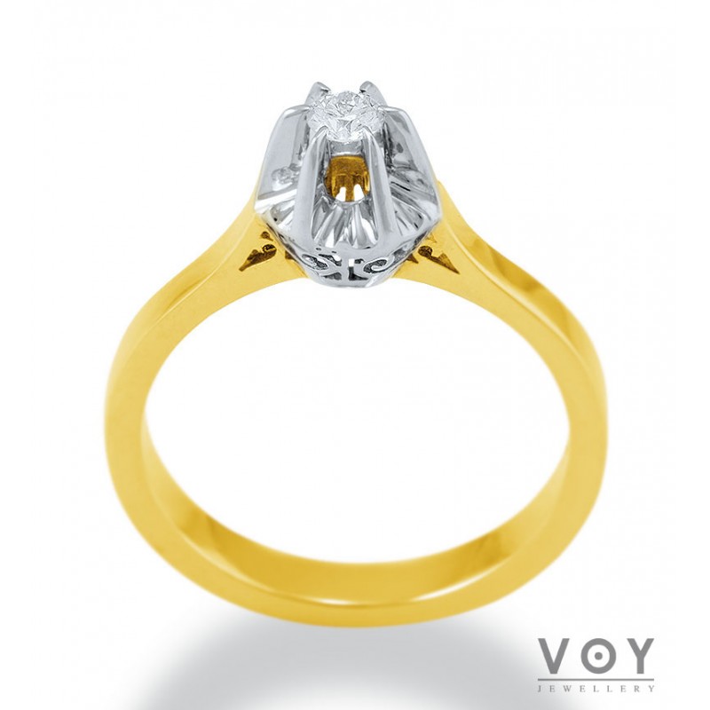 Δεξιοτεχνία, αρμονία και τελειότητα χαρακτηρίζει αυτό το μονόπετρο δαχτυλίδι από Χρυσό 18 Καρατίων με Διαμάντι.