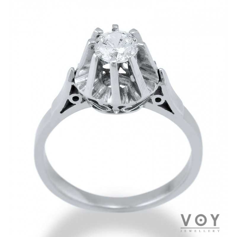 Δεξιοτεχνία, αρμονία και τελειότητα χαρακτηρίζει αυτό το μονόπετρο δαχτυλίδι από 18 καράτια Λευκόχρυσο με Διαμάντι.