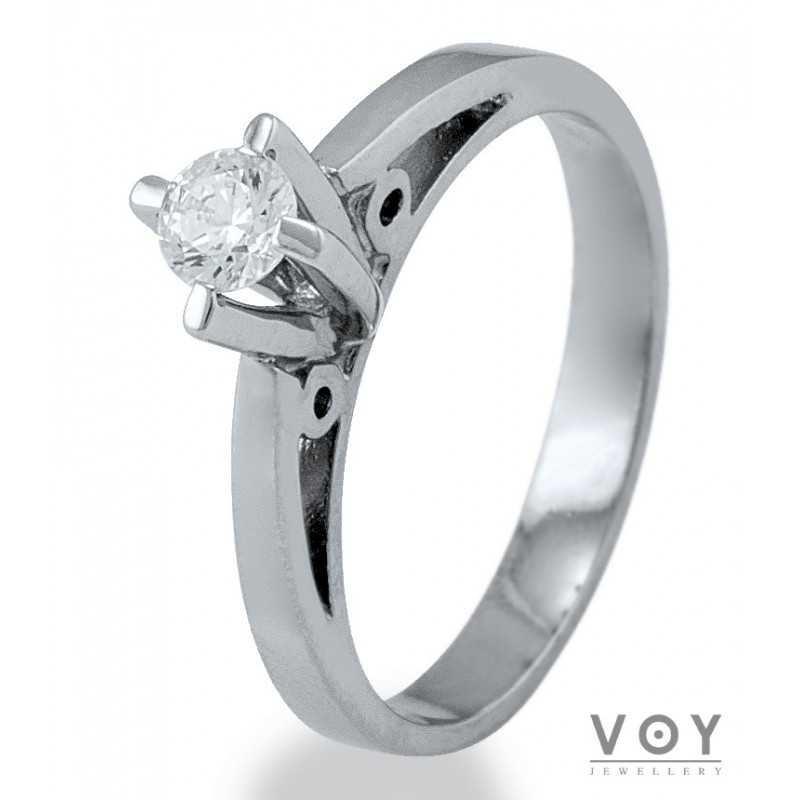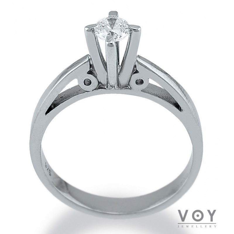Δεξιοτεχνία, αρμονία και τελειότητα χαρακτηρίζει αυτό το μονόπετρο δαχτυλίδι από 18 καράτια Λευκόχρυσο με Διαμάντι.