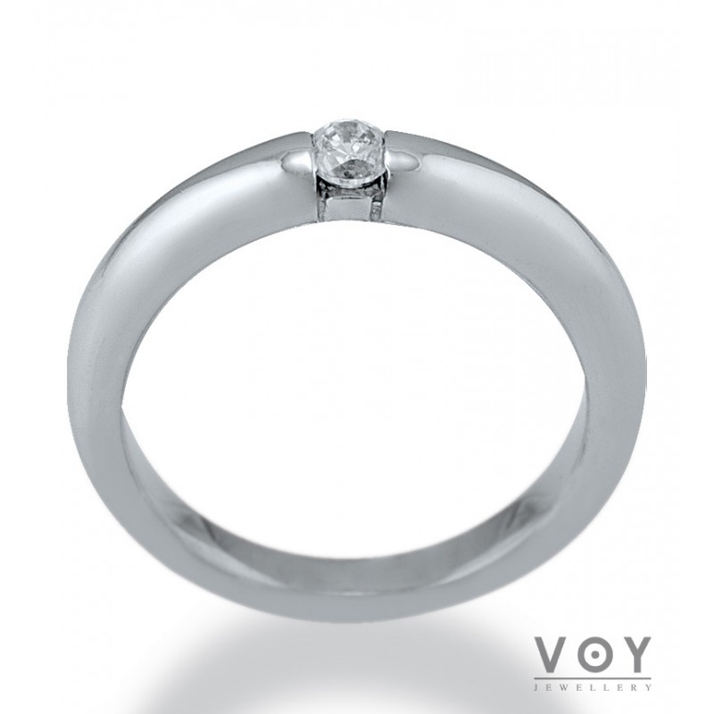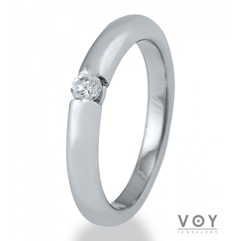 Δεξιοτεχνία, αρμονία και τελειότητα χαρακτηρίζει αυτό το μονόπετρο δαχτυλίδι από 18 καράτια Λευκόχρυσο με Διαμάντι.