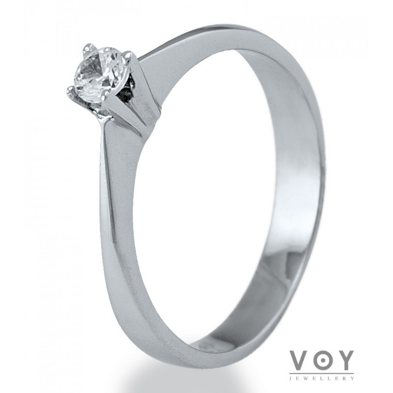 Δεξιοτεχνία, αρμονία και τελειότητα χαρακτηρίζει αυτό το μονόπετρο δαχτυλίδι από 18 καράτια Λευκόχρυσο με Διαμάντι.