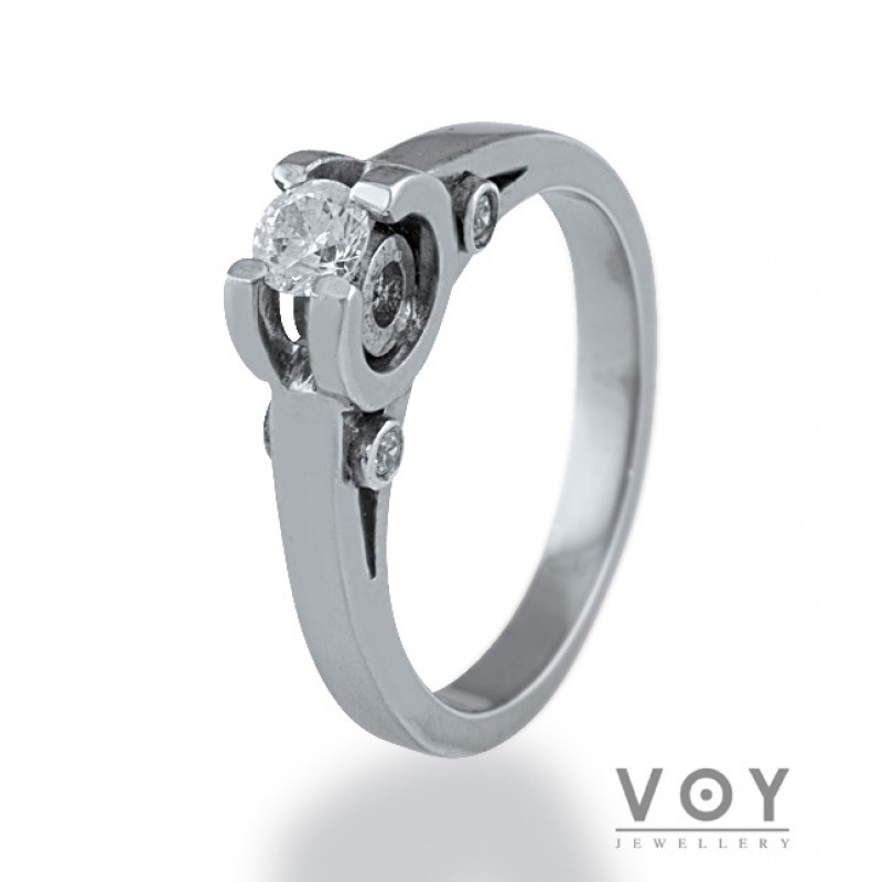 Δεξιοτεχνία, αρμονία και τελειότητα χαρακτηρίζει αυτό το μονόπετρο δαχτυλίδι από 18 καράτια Λευκόχρυσο με Διαμάντι.