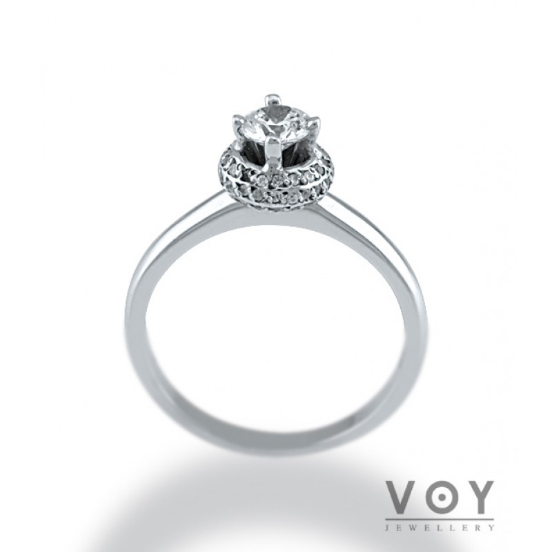Δεξιοτεχνία, αρμονία και τελειότητα χαρακτηρίζει αυτό το μονόπετρο δαχτυλίδι από 18 καράτια Λευκόχρυσο με Διαμάντι.