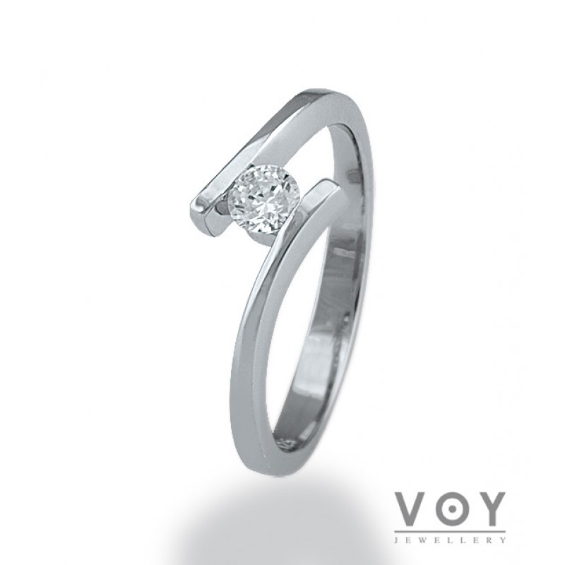 Δεξιοτεχνία, αρμονία και τελειότητα χαρακτηρίζει αυτό το μονόπετρο δαχτυλίδι από 18 καράτια Λευκόχρυσο με Διαμάντι.