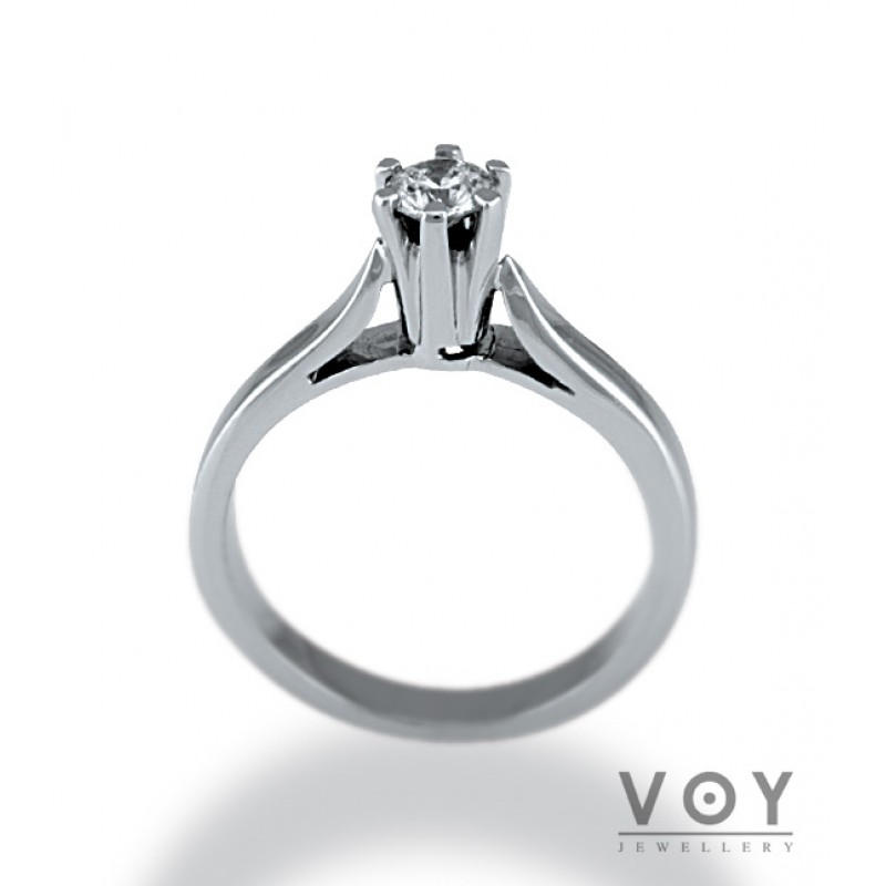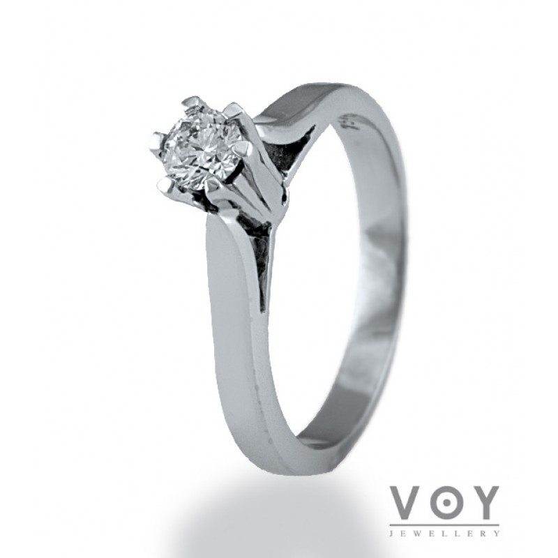 Δεξιοτεχνία, αρμονία και τελειότητα χαρακτηρίζει αυτό το μονόπετρο δαχτυλίδι από 18 καράτια Λευκόχρυσο με Διαμάντι.