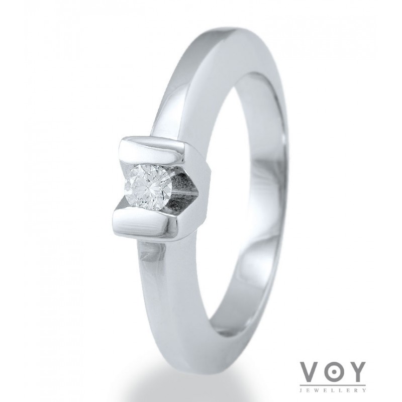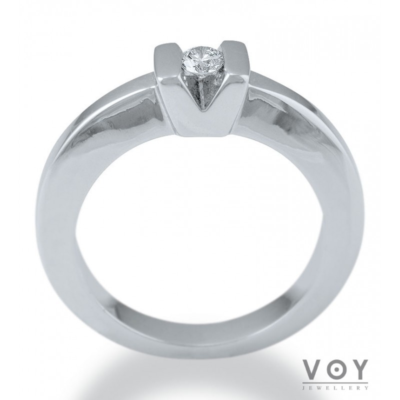 Δεξιοτεχνία, αρμονία και τελειότητα χαρακτηρίζει αυτό το μονόπετρο δαχτυλίδι από 18 καράτια Λευκόχρυσο με Διαμάντι.