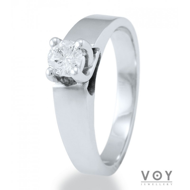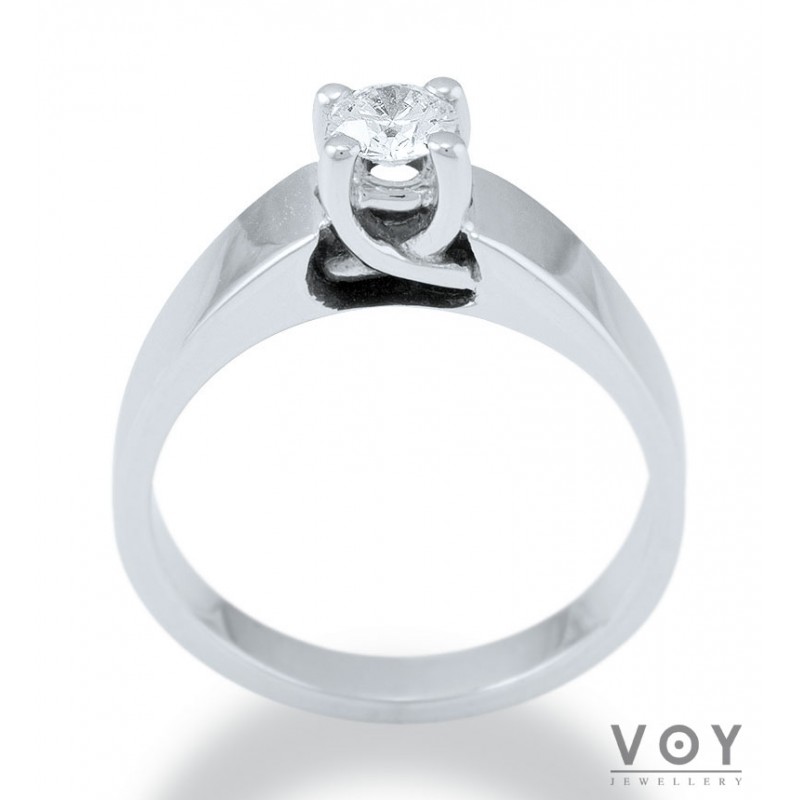 Δεξιοτεχνία, αρμονία και τελειότητα χαρακτηρίζει αυτό το μονόπετρο δαχτυλίδι από 18 καράτια Λευκόχρυσο με Διαμάντι.