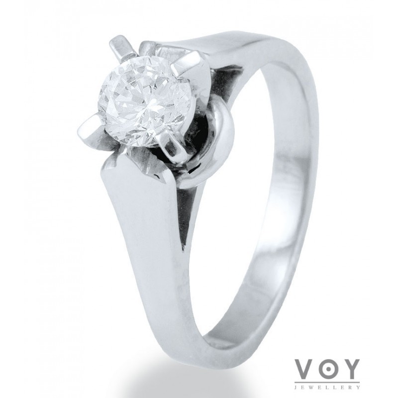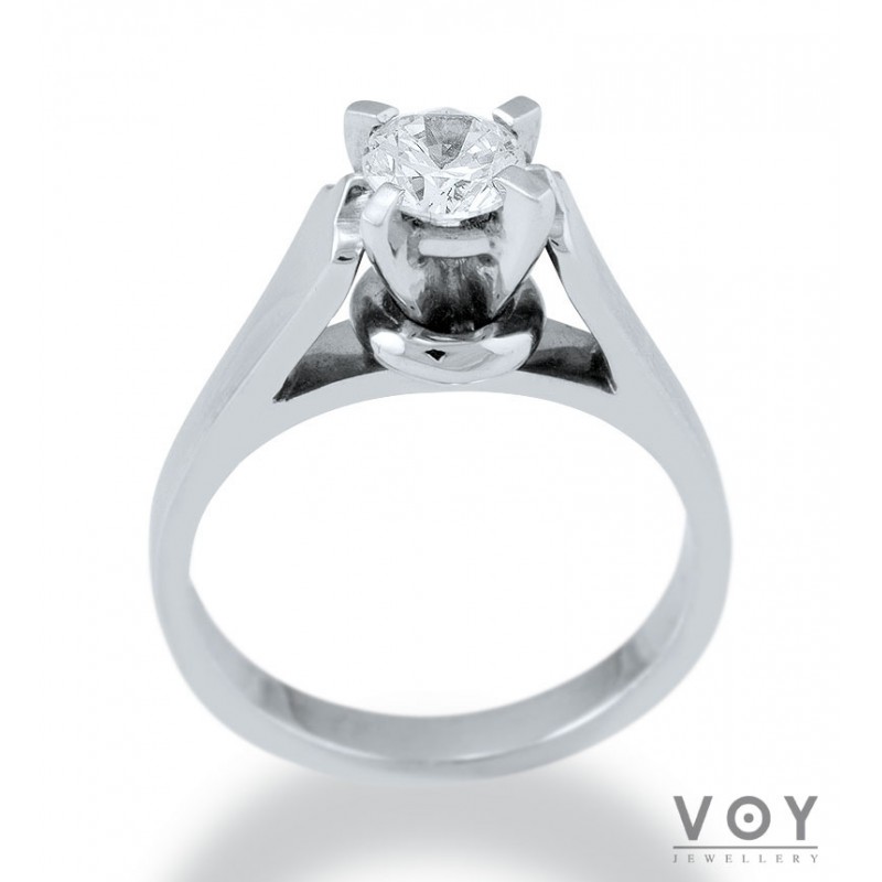 Δεξιοτεχνία, αρμονία και τελειότητα χαρακτηρίζει αυτό το μονόπετρο δαχτυλίδι από 18 καράτια Λευκόχρυσο με Διαμάντι.